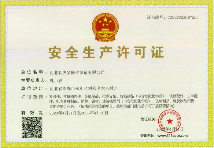 歡迎新老客戶來電垂詢,來廠參觀考察,洽談合作河北森虎緊固件制造有限公司